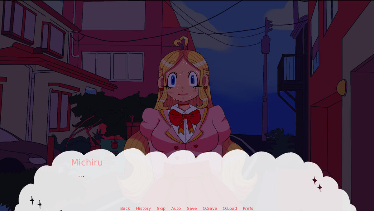 In the game, you ( who plays as Michiru) want to uncover what is bothering Aoi. But there is a much darker truth lurking underneath the surface. If you want the True Ending, it is your job to avoid these unwanted truths until your final encounter.When you are coming upon a discussion that contains an unwanted truth, the **[WORLD WARNING] **will flash, which allows you to decide whether you want to press on or not. Most discussions have multiple levels of choices, and you can back out before you reach the end and trigger a Bad Ending.